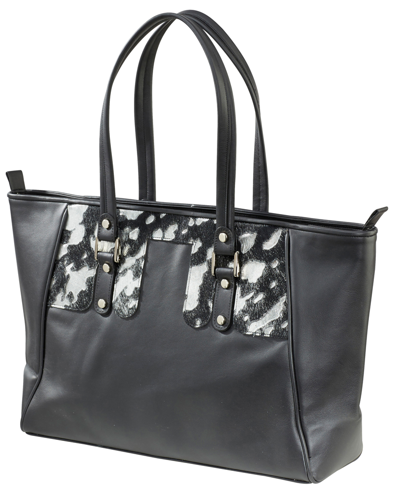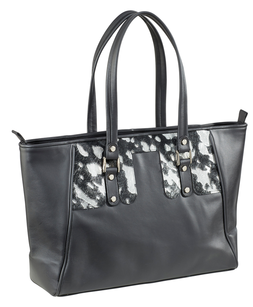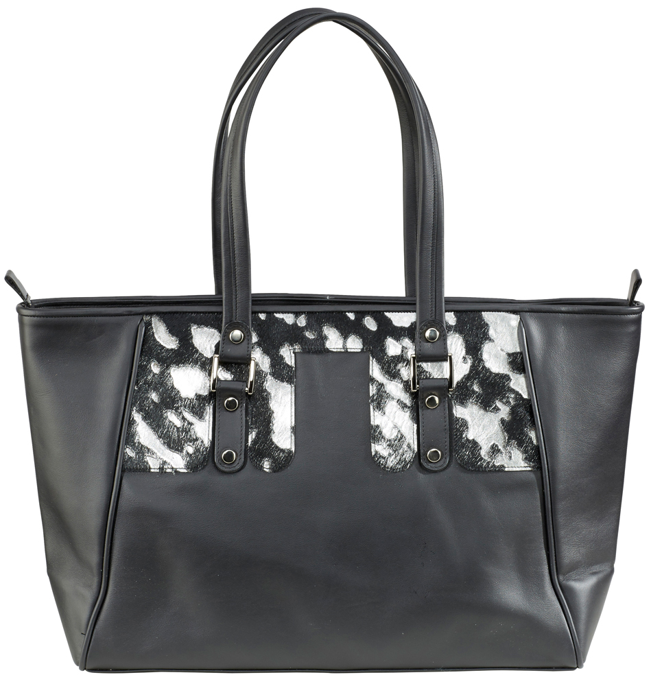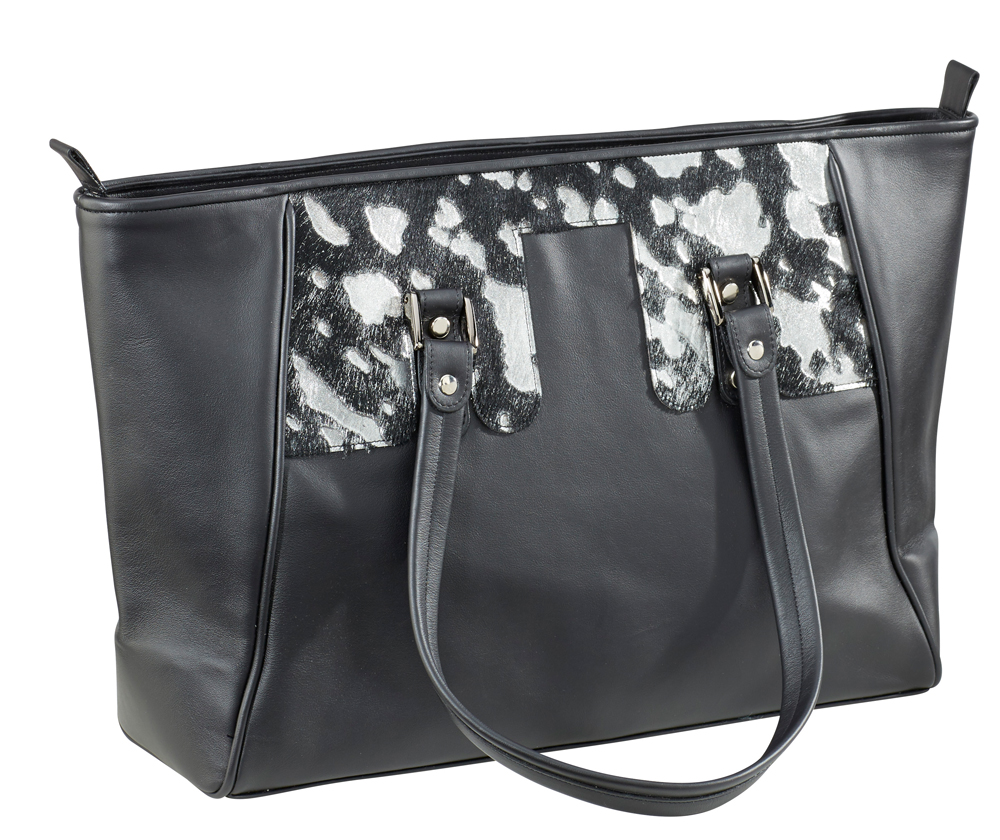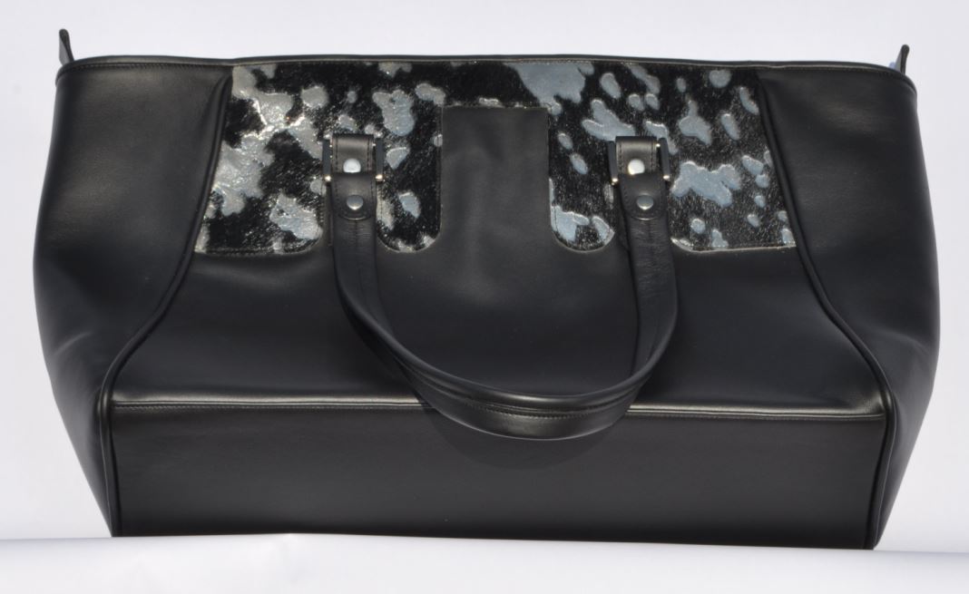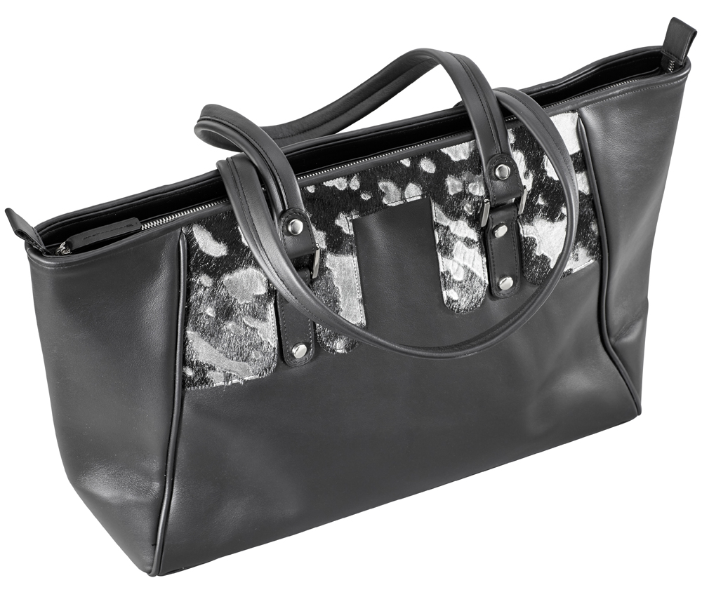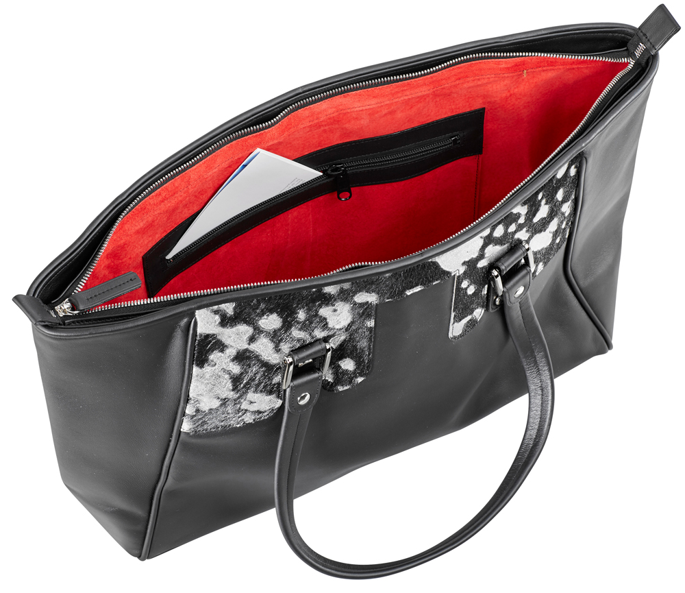 New Collection SchellBag "Classic", Rindleder schwarz, Echtes Kuhfell Silber, gefüttert mit rotem Schweinsleder